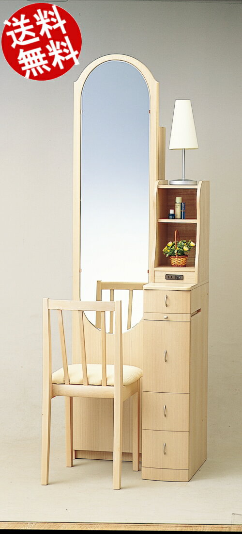 【50%OFF】【送料無料】日本製★鏡裏にも収納たっぷり♪メイプル材をふんだんに使った贅沢な仕様★色違い・お揃いチェストもあります一面姿見鏡台ドレッサー 66幅 エンゼル ナチュラル